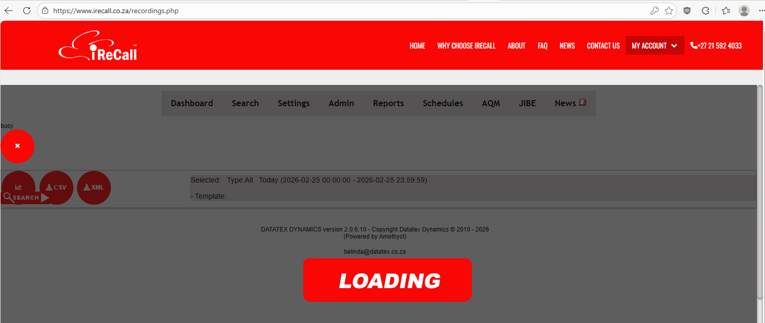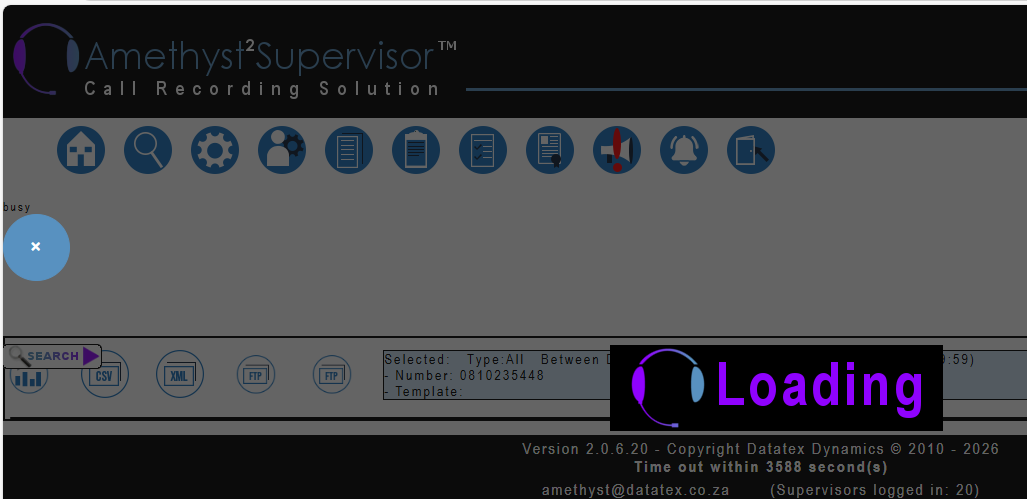 - The AMETHYST Supervisor / iRecall login page is available. Login details are accepted, but then it is slow to show the next page.